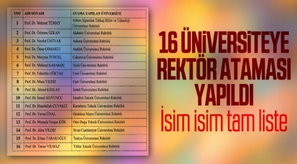 16 üniversiteye rektör atanmasına ilişkin Cumhurbaşkanı kararı Resmi Gazete’de yayımlandı.