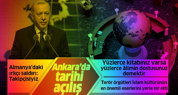 Başkan Recep Tayyip Erdoğan, Cumhurbaşkanlığı Külliyesi’nde Millet Kütüphanesi Açılış Töreni’nde önemli açıklamalarda bulundu. Erdoğan, “Bugün ülkemiz ve Ankara’mız için gerçekten tarihi bir ana şahitlik ediyoruz. Cumhurbaşkanlığı Millet Kütüphanemizin açılışı vesilesiyle sizlerle beraber olmaktan büyük bir memnuniyet duyuyorum.” dedi. Başkan Erdoğan, “Her kitap bir âlimdir. Eğer yüzlerce kitabınız varsa, yüzlerce âlimin dostusunuz ve onların ilminden faydalanıyorsunuz demektir. Bu da bir nevi dünyada cennet hayatı yaşamak, cennet meyvelerinden tatmaktır.” ifadelerini kullandı.