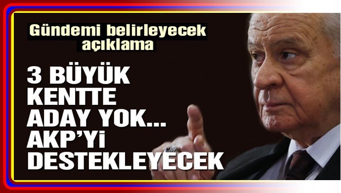 İstanbul’da aday çıkarmayacaklarını hatırlatan Bahçeli, “Buradan açıkça ilan ediyorum; Milliyetçi Hareket Partisi İstanbul’un yanı sıra, Ankara ve İzmir Büyükşehir Belediye Başkan adaylarını da göstermeyecek, Cumhur İttifakı’nın mana ve muhtevasında gerekli çalışmalarını heyecanla ifa edecektir. Adalet ve Kalkınma Partisi’nin adayları kim olursa olsun bu üç büyük şehirde desteğimiz tam olacaktır. Bu irademizde pazarlık yoktur, gizli anlaşma yoktur, al-ver süreci olmamıştır. Diğer her yerde adaylarımız vardır, adaylığı belli olan dava arkadaşlarımız da çalışmalarına devam edeceklerdir. Bir başka önemli kararımız da şudur, zillet ittifakının paydaşı olan CHP-HDP-İYİ Parti ve diğer yedekleri her nerede ortak aday çıkarırlarsa çıkarsınlar biz hazırız, onlarla her seviyede mücadeleye kararlıyız. Zilletin ortak adayları nerede karşımıza çıkıyorsa işte orada Cumhur İttifakı’nın ruhuna uygun ve uyumlu hareket etmeye sonuna kadar varız. Ona buna bakmayacağız, kulak asmayacağız. Türkiye’yi yem ettirmeyeceğiz, tutsak düşürmeyeceğiz. Cumhurbaşkanlığı Hükümet Sistemi’ni hedef alan kim varsa karşılarında bizi bulacaktır” ifadelerine yer verdi.