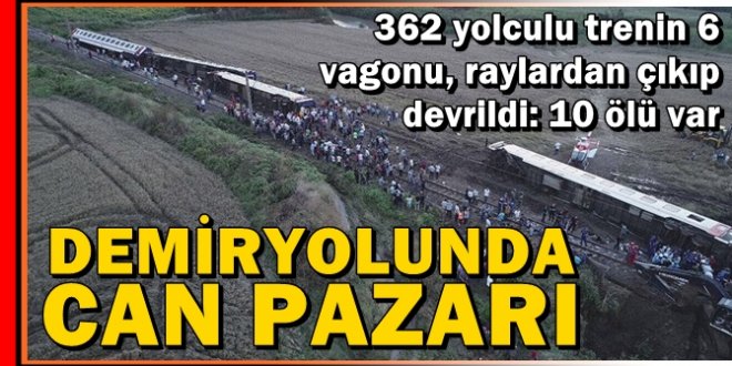 Tekirdağ’ın Çorlu ilçesi yakınlarında Uzunköprü-İstanbul seferini yapan 362 yolculu trenin 6 vagonu, raylardan çıkıp devrildi. Başbakanlık’tan yapılan açıklamada kazaya toprak kayması sonucu hasar gören köprünün çökmesinin neden olduğu ifade edildi. Cumhurbaşkanı Erdoğan’ın, Ulaştırma Bakanı Ahmet Aslan ve İçişleri Bakanı Süleyman Soylu’dan kaza hakkında bilgiler aldığı ve kazada ölenler için rahmet dilediği öğrenildi. Sağlık Bakanlığı’ndan gelen son dakika açıklamasında ise, kazada ilk belirlemelere göre 10 kişinin hayatını kaybettiği, 73 kişinin de yaralandığı belirtildi. Öte yandan Anadolu Ajansı, Başbakanlık tarafından kazayla ilgili geçici yayın yasağı getirildiğini duyurdu.