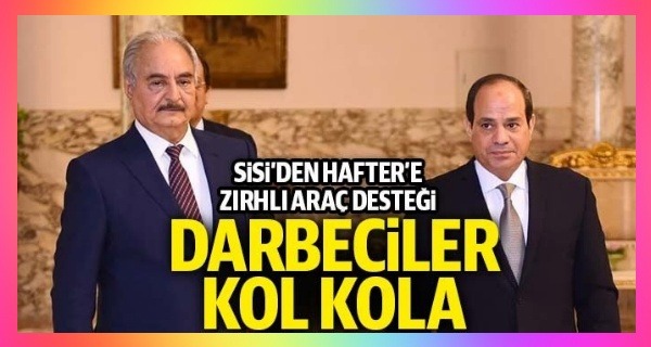 Mısır’ın darbecisi Sisi, Libya’da darbe girişiminde bulunan ve geçtiğimiz günlerde göçmen merkezini bombalayan Hafter’e destek amacıyla Bingazi’ye zırhlı araçlar sevk etti.