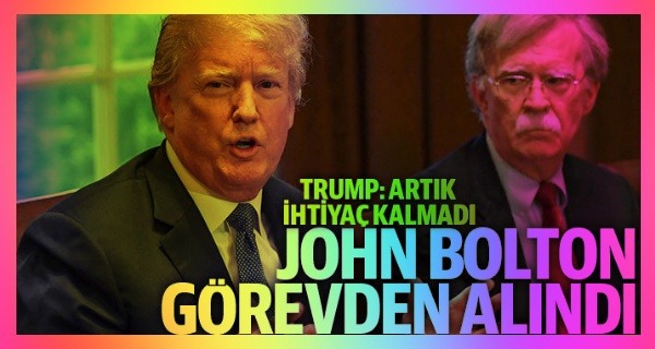 ABD Başkanı Donald Trump, Beyaz Saray Ulusal Güvenlik danışmanı John Bolton’ın görevden alındığını açıkladı. Trump, attığı Twitter mesajlarında, “Dün akşam John Bolton’a, Beyaz Saray’daki hizmetlerine artık ihtiyaç kalmadığını söyledim. Yönetimdeki diğerleri gibi, yaptığı önerilerin birçoğuna hiç katılmıyordum ve bu nedenle John’un istifasını istedim, o da bu sabah sundu” dedi.