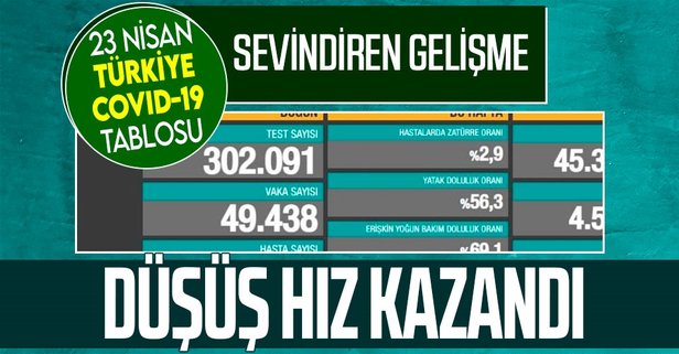 Sağlık Bakanlığı 23 Nisan 2021 koronavirüs vaka ve vefat sayılarını içeren Kovid-19 tablosunu paylaştı. Tabloya göre, son 24 saatte yapılan 302 bin 91 testte 49 bin 438 vaka, 3 bin 89 hasta tespit edildi. 343 kişi hayatını kaybetti.