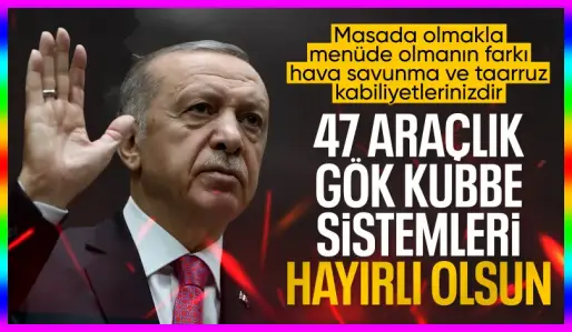 Çelik Kubbe Teslimatları- Tesis Açılışları ve Oğulbey Temel Atma Töreni’nde konuşan Cumhurbaşkanı Erdoğan, 47 araçlık Gök Kubbe sistemlerinin hayırlı olması temennisinde bulunarak, “Masada olmakla menüde olmak arasındaki ince çizgi savunma kabiliyetlerimizdir.” vurgusu yaptı.