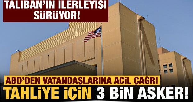 ABD’nin Kabil Büyükelçiliği, tüm ABD vatandaşlarına bir an önce Afganistan’dan ayrılmaları çağrısında bulundu. Pentagon Sözcüsü Kirby, Amerikalı personelin tahliyesi için 3 bin askerin Afganistan’a gönderileceğini açıkladı.