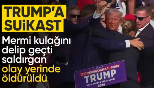 İlk patlamanın ardından Trump’ın kürsüde sağ kulağını tuttuğu görüldü. Patlamalar devam ederken, korumalar kürsüye atlayarak, Trump’ın etrafını sardı.