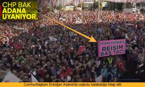 Cumhurbaşkanı Erdoğan konuyla ilgili, “Şu anda Adana’da meydanda 75 bin kişi var. Adana’nın gerçek belediyeciliğe olan hasretini dindirmeye az kaldı” ifadelerini kullandı.