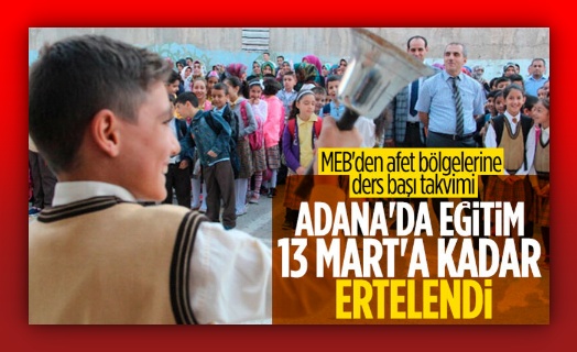 Milli Eğitim Bakanı Özer, Kahramanmaraş merkezli depremlerden etkilenen Adana’da eğitim ve öğretime başlama tarihinin 13 Mart’a ertelendiğini açıkladı.
