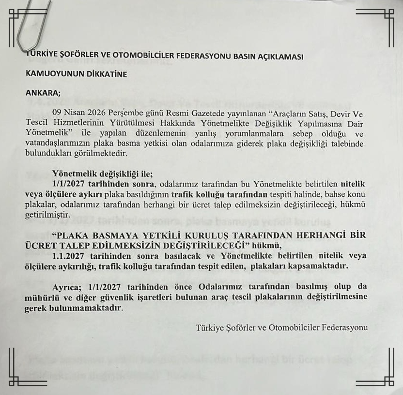 “Resmi açıklamalar dışında hiçbir bilgiye itibar edilmemeli. Şu an için plaka değişimi zorunluluğu kesinlikle yoktur. Vatandaşımız gereksiz işlem yaptırarak zaman ve para kaybetmesin.”