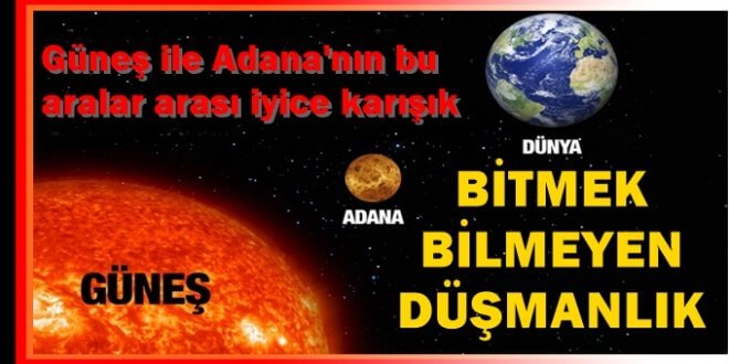 Adana’daki aşırı sıcaklar güneşe olan düşmanlığı arttırıyor. Geçmiş yıllarda fazla sıcaklık saçan güneşe ateş açan 2 Adanalıdan sonra bu kez de bir mucit motorsikletine içi su dolu küvet yerleştirerek, güneşe tepkisini ortaya koydu.