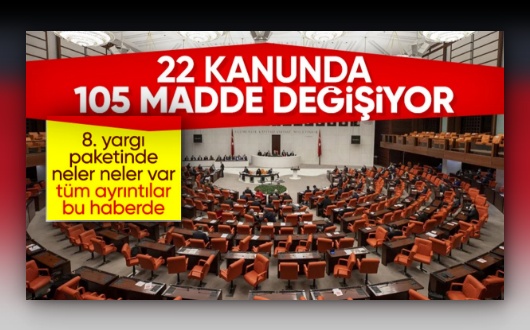 Cumhurbaşkanlığı’na gönderilen ve değerlendirme aşamasında olan yeni yargı paketinde 22 farklı kanunda 105 madde değiştiriliyor. İşte tüm ayrıntılarıyla 8. yargı paketi…