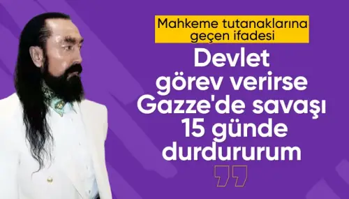 Kendisine görev verilmesi durumunda Gazze’deki saldırıları 15 gün içinde durdurabileceği iddiasında bulunan Adnan Oktar, “15 gün içinde savaşı durdururum. Cezaevinden çıkmama da gerek yok. Bana bir oda ayarlasalar burada rahatça yapabilirim” dedi.