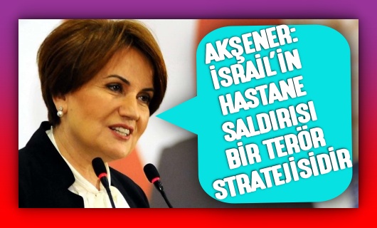 İYİ Parti Genel Başkanı Meral Akşener, İsrail’in Gazze’deki hastane saldırısına ilişkin, “Bu ancak ve ancak bir terör stratejisidir. Başta Birleşmiş Milletler olmak üzere tüm dünya kamuoyunu bir an önce en temel insan haklarına sahip çıkmaya ve Netanyahu terörünü durdurmaya davet ediyorum.” ifadelerini kullandı.