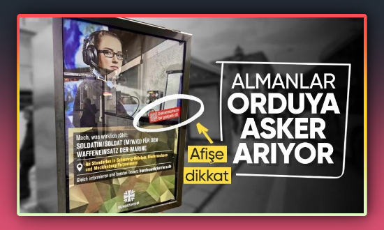 Alman Silahlı Kuvvetleri, personel sayısını 203 bine çıkarma hedefiyle personel arayışını hızlandırdı. Ordunun hazırlattığı afişlerde Türkçe olarak “donanmamızın bir parçası ol” ifadesi yer aldı.