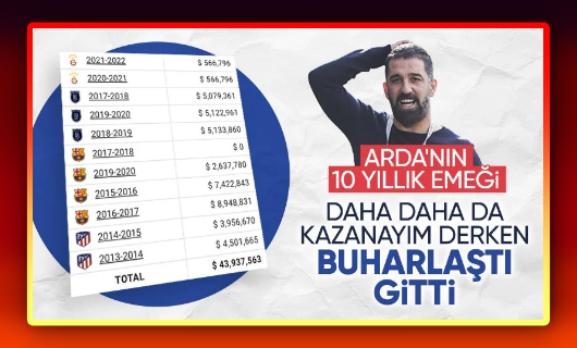 Futbolculuk döneminde Galatasaray, Atletico Madrid ve Barcelona gibi kulüplerde oynayan Arda Turan, 2013’ten beri oynadığı takımlardan 44 milyon dolar kazanç elde etti.