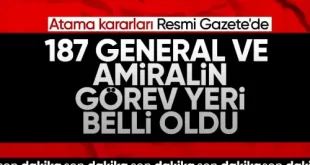 Haberin Detayı İçin Tıklayınız187 general ve amiralin görev yeri Resmi Gazete’de!