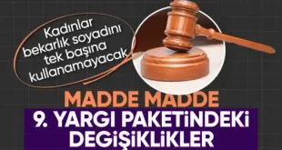TBMM Adalet Komisyonu’nda 9. Yargı Paketi’nin ilk görüşmeleri tamamlandı. Kanun teklifi Adalet Komisyonu’nda kabul edildi. Yeni düzenlemeye göre; AYM kararına rağmen kadınlar evlendikten sonra bekarlık soyadlarını tek başına kullanamayacak. Kamuoyunda “9. Yargı Paketi” olarak bilinen Bazı Kanunlarda Değişiklik Yapılmasına Dair Kanun Teklifi, TBMM Adalet Komisyonu’nda kabul edildi. Teklifle, İcra ve …