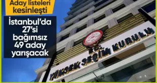 Yüksek Seçim Kurulu’nun paylaştığı kesinleşen aday listelerine göre İstanbul, büyükşehir belediye başkanlığı için 22’si siyasi parti, 27’si bağımsız toplam 49 adayla en fazla adayın yarışacağı il oldu. Yerel seçime sayılı günler kaldı. Vatandaşlar 31 Mart’ta sandık başında olacak.5 yıl boyunca şehrini, ilçesini ve mahallesini emanet edeceği kişileri belirleyecek.Aday listeleri kesinleşti …