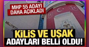 Milliyetçi Hareket Partisi, adaylıkları kesinleşen 2’si il 53’ü ilçe olmak üzere 55 belediye başkan adayını daha açıkladı. Milliyetçi Hareket Partisi, 31 Mart yerel seçimleri için 55 adayını belirledi. MHP, Kilis’te Hasan Kara’yı, Uşak’ta da Sezer Ateş belediye başkan adayı oldu. 3’ü büyükşehir ilçesi olmak üzere 53 ilçede de belediye başkan …