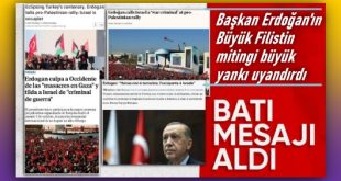 Cumhurbaşkanı Recep Tayyip Erdoğan’ın Büyük Filistin Mitingi’nde Filistinlilere yönelik yeni bir katliama girişen İsrail’e ve buna sessiz kalan, destekleyen batılı devletlere sert eleştirileri ve uyarıları, dünya basınında geniş yer buldu. İstanbul’da Gazze’nin sesi olmak için düzenlenen Büyük Filistin Mitingi’ne onbinlerce vatandaş katılırken, alanı dolduranlara hitap eden Cumhurbaşkanı Recep Tayyip Erdoğan’ın …