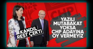 Haberin Detayı İçin TıklayınızKandil resti çekti: Yazılı mutabakat yoksa CHP adayına oy vermeyiz
