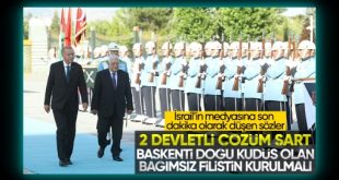 Cumhurbaşkanı Erdoğan’ın davetiyle Türkiye’ye gelen Filistin Devlet Başkanı Mahmud Abbas ortak basın toplantısı düzenledi. Erdoğan, başkenti Doğu Kudüs olan bağımsız Filistin devletine bir kez daha işaret etti. Türkiye dünya genelinde diplomatik faaliyetlerini ara vermeden sürdürüyor. Filistin Devlet Başkanı Mahmud Abbas, Cumhurbaşkanı Recep Tayyip Erdoğan’ın daveti üzerine Türkiye’ye geldi. Resmi törenle …