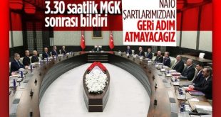 2023’ün ilk Milli Güvenlik Kurulu bildirisinde, NATO üyeliği onayı için Türkiye’nin onayını bekleyen Finlandiya ve İsveç’e “yükümlülüklerinizi yerine getirin” uyarısı yapıldı. 2023’ün ilk Milli Güvenlik Kurulu (MGK) toplantısı sona erdi. Cumhurbaşkanlığı Külliyesi’ndeki toplantı saat 15.20’de başlarken toplantı 3 saat 40 dakika sürdü. Cumhurbaşkanı Recep Tayyip Erdoğan başkanlığında yapılan toplantının ardından …