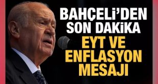 MHP lideri Bahçeli Elazığ’da, ” Her insanımızın elinden tutacağız. EYT, sözleşme çilesi yaşayan kardeşlerimize deva olacağız.” diyerek, “Enflasyon çıktığı gibi inecektir.” açıklamasında bulundu. MHP Genel Başkanı Devlet Bahçeli, “Kötü niyetli hiç kimse boş hayale kapılmasın, boşuna heves etmesin. Çünkü Cumhur İttifakı alayına birden göğüs germeye ve kirli oyunlarını birer birer …