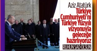 Erdoğan, “Türkiye Cumhuriyeti’ni 85 milyon olarak, Türkiye Yüzyılı vizyonuyla geleceğe daha güçlü bir şekilde hazırlıyoruz” dedi. Türkiye Cumhuriyeti’nin kurucusu Gazi Mustafa Kemal Atatürk, ebediyete intikalinin 84. yılında anılıyor. Bu kapsamda Anıtkabir’de tören düzenlendi. Cumhurbaşkanı Recep Tayyip Erdoğan ve devlet erkanı, Atatürk mozolesine çelenk bıraktı. “Zat-ı alinizi ve kahraman silah arkadaşlarınızı rahmetle yâd …