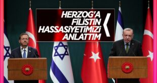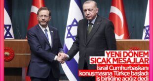 Haberin Detayı İçin TıklayınızCumhurbaşkanı Erdoğan, İsrail Cumhurbaşkanı Herzog’a görüşmesinde Filistin meselesinden bahsettiğini, konuya ilişkin hassasiyeti açıkça dile getirdiğini belirtti. Türkiye ile İsrail arasındaki ilişkilerde yeni bir döneme giriliyor. İsrail Cumhurbaşkanı Isaac Herzog, 14 yıl aradan sonra Türkiye’ye ziyarete geldi. Herzog, Cumhurbaşkanı Erdoğan ile ikili görüşmeler gerçekleştirdi. Görüşmelerin ardından kameraların karşısına çıkan Cumhurbaşkanı Erdoğan ve İsrail …