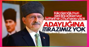 Haberin Detayı İçin TıklayınızİYİ Parti: Kılıçdaroğlu’nun adaylığına en ufak bir itirazımız yok