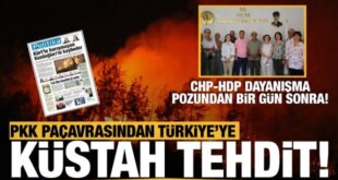 Terör örgütü PKK'nın paçavrası Yeni Özgür Politika, Türkiye'yi Kaz Dağlarını yakmakla tehdit etti. Haberi ''Kürt'le barışmayan Kaz Dağları'nı kaybeder'' başlığıyla veren Yeni Özgür Politika, skandal ifadeler kullandı. Terör örgütü PKK'nın borazanı olan Yeni Özgür Politika isimli gazete, bugünkü sayısında Türkiye'yi manşetten verdiği haberle aşağılık bir şekilde tehdit etti. ''Kürt'le barışmayan Kaz Dağları'nı kaybeder'' başlıklı haberde, [...]