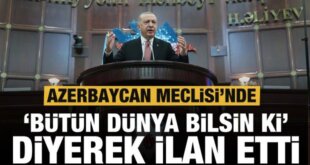 Son dakika haberi: Cumhurbaşkanı Erdoğan, Azerbaycan Milli Meclisi'nde önemli açıklamalarda bulundu. Azerbaycan'a tarihi bir ziyarette bulunan Başkan Recep Tayyip Erdoğan, bugünkü programı kapsamında, Azerbaycan Milli Meclisi'ne hitap etti. Erdoğan'ın açıklamalarından satır başları: Bahtiyarım, çünkü Karabağ'ı azad etmiş Azerbaycan'ın milli meclisinde sizlerle beraberim. 30 yıl içinde kimlerin eline ne geçtiği, kimlerin kaybettiği gayet iyi biliniyor. Maddi ve manevi [...]