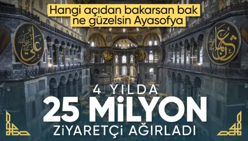 Yerli ve yabancı turistler için çekim alanı olan Ayasofya Camii, ibadete açılmasının üzerinden geçen 4 yılda yaklaşık 25 milyon ziyaretçiyi ağırladı.