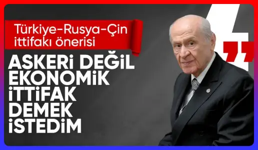 Türkiye-Rusya-Çin ittifakı önerisine ilişkin değerlendirmede bulunan MHP Genel Başkanı Devlet Bahçeli, “Askerî değil; NATO yükümlülükleriyle çelişmeyen sivil-ekonomik sütunlar etrafında kurumsallaşması daha uygun olabilecektir” dedi.