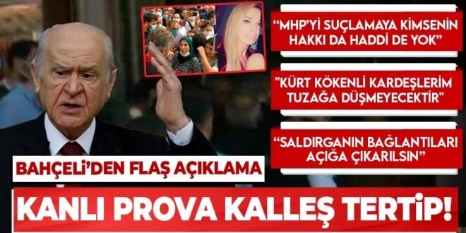 MHP Lideri Devlet Bahçeli ‘Bu haliyle HDP’nin İzmir il binasına yapılan saldırı kanlı bir prova, toplumun sinir uçlarını test eden kalleş bir tertiptir.’ dedi.