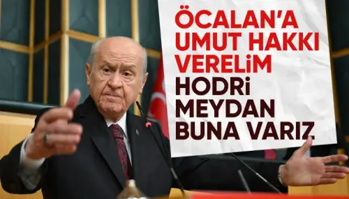 Teröristbaşına ‘umut hakkı’ tanınması hakkının da bu çağrı ile saklı olduğunu dile getiren Bahçeli, şöyle konuştu: “Teröristbaşı terörün tamamen bittiğini ve örgütün lağvedildiğini haykırsın. Bu dirayet ve kararlılığı gösterirse, umut hakkının kullanımıyla ilgili yasal düzenlemenin yapılması ve bundan yararlanmasının önü de ardına kadar açılsın. Ne Kandil, ne de Edirne; adres İmralı’dan DEM’e uzansın, bu ağır ve tarihi terör sorunu ülke gündeminden tamamen çıkarılsın.