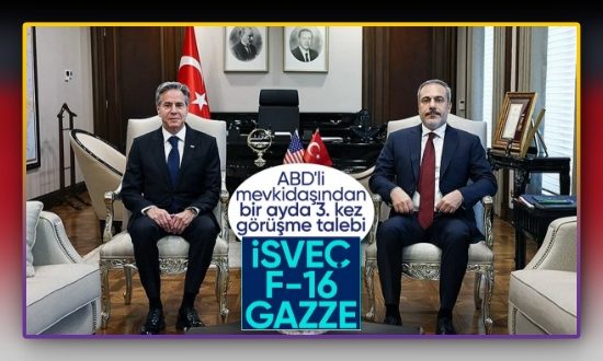 Bakan Fidan, ABD’li mevkidaşı Blinken’ın talebi üzerine son bir ayda hem yüz yüze hem de telefonla 3 kez görüşme gerçekleştirdi. 3 görüşmede de Türkiye’nin İsveç’in NATO üyeliği ve Gazze’deki katliamın durdurulmasına yönelik söylem ve beklentileri defaatle vurgulandı.