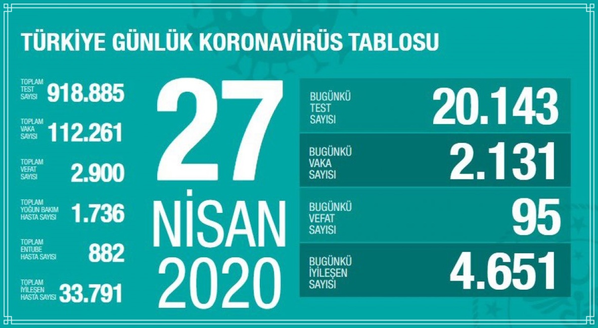 Sağlık Bakanı Fahrettin Koca verileri, “Bir gün içinde iyileşen en yüksek hasta sayısına ulaştık. Temaslı sayısı ve temas ortamı azaldığı için, ihtiyaç duyulan test sayısında azalma bugün de devam etti. Yoğun bakım ve entübe hasta sayısında düşüş sürüyor. Bu başarıyı riske atmayalım.” notuyla paylaştı.