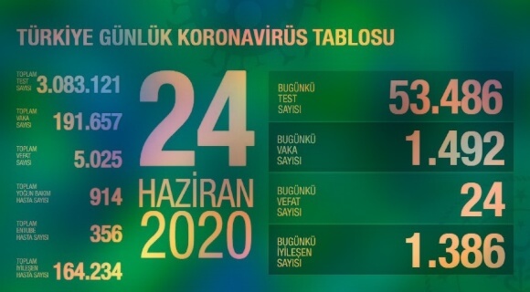 Sağlık Bakanı Koca, son 24 saatte koronavirüs nedeniyle 24 kişinin hayatını kaybettiğini, toplam can kaybının 5 bin 25 olduğunu açıkladı. “Koronavirüsün oldukça zor, pek çok bilinmezi beraberinde getirdiği bir dönemini aştığımız konusunda bir iyimserlik içindeyiz. (Kovid-19’la mücadele) Tedbire daha az ihtiyaç duyulacak dönemi, şimdi uyguladığımız tedbirlerle hazırlıyoruz. Kontrol dışı gelişmeleri ayrı tututarsak, önümüzdeki günlerin bu yaz günleri gibi aydınlık olacağına güçlü gerekçelerimiz var. (Kovid-19’la mücadele) Maske kullanmamak kişisel hukukun ihlalidir. Virüsün yayılma hızında azalma olmamıştır. Virüsün hasta etme gücünde azalma olduğu konusunda ise bilimsel bir kanıt yoktur. Mevcut şartlarda büyüklerimiz ve kronik hastalığı olanlar, virüse karşı halen risk grubundadır.