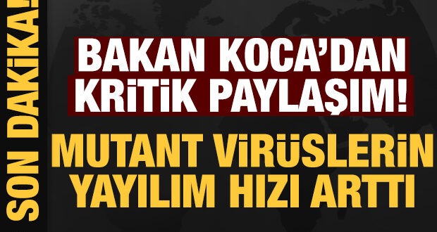 Ülkemizde mutasyona uğramış koronavirüs vakaları sıkı takip ile yakalanmaktadır. Alınan tüm tedbirlere rağmen maalesef gün geçtikçe mutant virüsler tüm dünyada olduğu gibi ülkemizde de artmaktadır. Mutant virüsle enfekte olduğu tespit edilen kişileri daha sıkı izolasyon kurallarına tabi tutuyoruz. Bugüne kadar 76 ilimizde toplam 41.488 B.1.1.7 (İngiltere) mutantı, 9 ilimizde toplam 61 B.1.351 (Güney Afrika) mutantı,