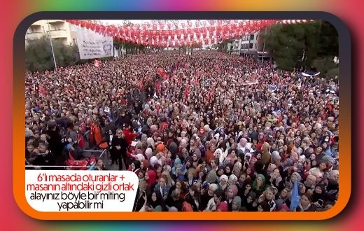 6’lı masaya gönderme yapılan pankarttaki yazıyı okuyan Erdoğan, “Pankart asılmış, dikkatimi çekti. Siz ezberlemişsinizdir ama hatırlatmam gerekecek. Zeytini koydum tasa, çıkardım yağını basa basa, Balıkesir efelerinden oy yok sana altılı masa. Bizim milletimiz böyle, kimsenin aklına gelmeyeni koyarlar masaya.” İfadelerini kullandı.