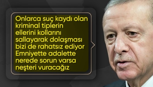Bazı kriminal tiplerin ortalıkta dolaşmasından kendilerinin de rahatsız olduğunu bildiren Cumhurbaşkanı Erdoğan, “İnsanlarımızın hayatını güvenle hissedebilmesini sağlamak için ne gerekiyorsa yapacağız.” şeklinde konuştu.