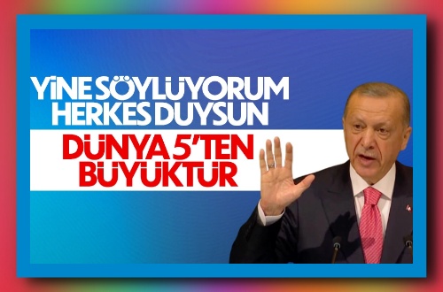 Konuşmasına katılımcıları selamlayarak başlayan Erdoğan, “Dünya 5’ten büyüktür” sözünü yineleyerek şu ifadeleri kullandı: