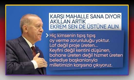 Yerel seçimler için laf değil hizmet üreten adaylar belirlediklerini söyleyen Cumhurbaşkanı Erdoğan, seçmenin herhangi bir adaya mecbur bırakılamayacağını belirterek muhalefeti de ‘tıpış tıpış oy verme’ söylemi üzerinden eleştirdi.