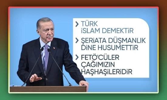 Son dönemdeki şeriat tartışmalarına değinen Cumhurbaşkanı Recep Tayyip Erdoğan, İslam ve Türklük kavramlarının birbirinden ayrılmayacağına vurgu yaparken, İslam’ın hayata dair kurallarının bütününü temsil eden şeriata düşmanlık etmenin de esasında dininin bizatihi kendisine husumet beslemek olduğunu söyledi.