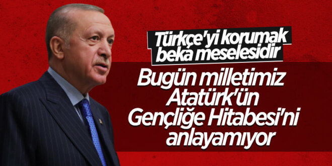 Cumhurbaşkanı Erdoğan, “Bugün milletimizin Atatürk’ün Gençliğe Hitabesini anlayamaması, dilimize yapılan suikastın büyüklüğünü gözler önüne seriyor” dedi.