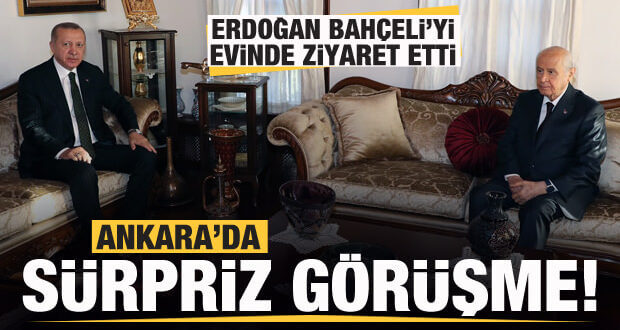 Cumhurbaşkanı Recep Tayyip Erdoğan, MHP Genel Başkanı Devlet Bahçeli ile bir araya geldi. MHP Genel Başkanı Bahçeli, Çayyolu’ndaki evinin önünde Cumhurbaşkanı Erdoğan’ı karşıladı. Basına kapalı gerçekleşen ziyaret yaklaşık 1 saat sürerken, MHP lideri Bahçeli, Cumhurbaşkanı Erdoğan’a görüşmenin ardından makam aracına kadar eşlik etti.