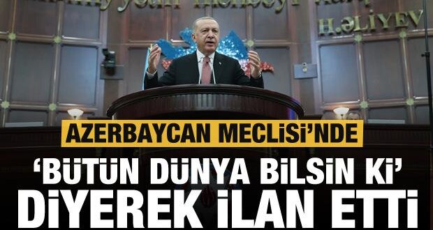 Son dakika haberi: Cumhurbaşkanı Erdoğan, Azerbaycan Milli Meclisi’nde önemli açıklamalarda bulundu.
