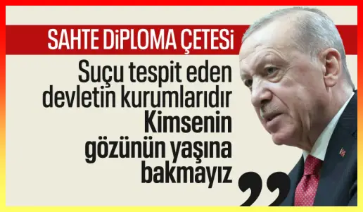 Kamu kurumlarının elektronik sistemlerine sızarak sahte imzalarla diploma kayıtları düzenleyen kişilere yönelik soruşturma sürerken, Cumhurbaşkanı Recep Tayyip Erdoğan’dan konuyla ilgili yeni bir açıklama geldi.